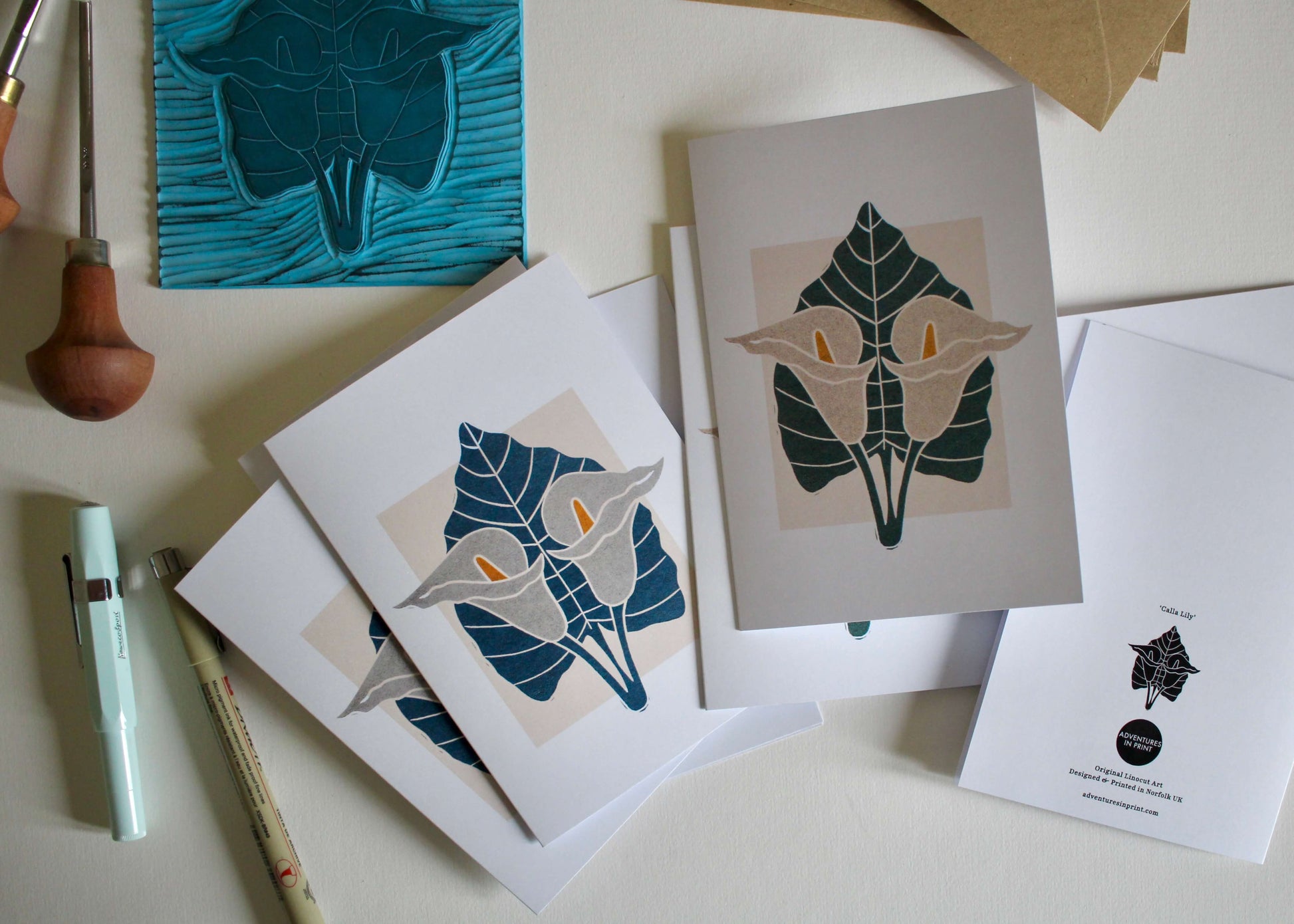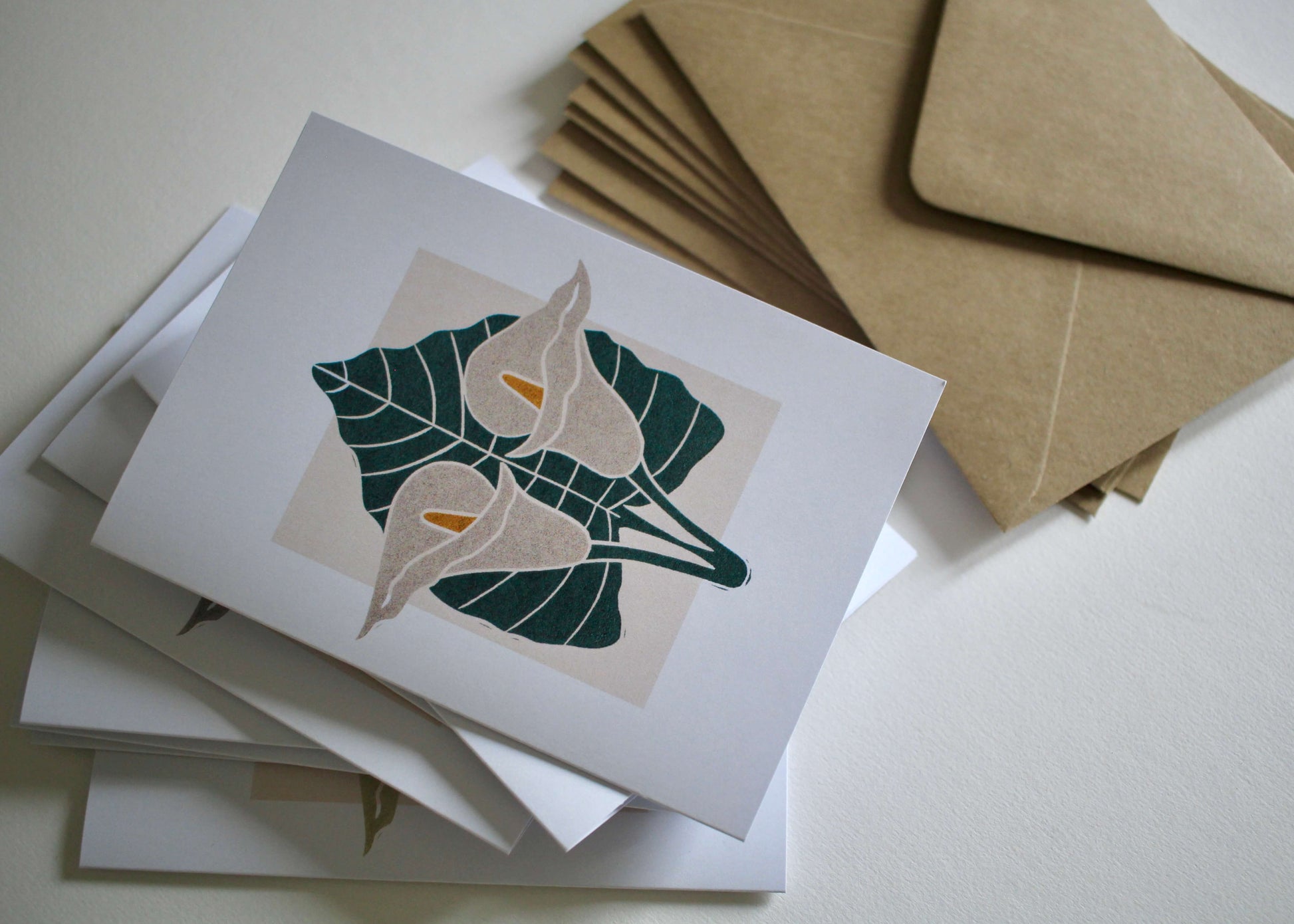 Calla Lily Block Print Notecards | Set of 8 Notecards & Envelopes