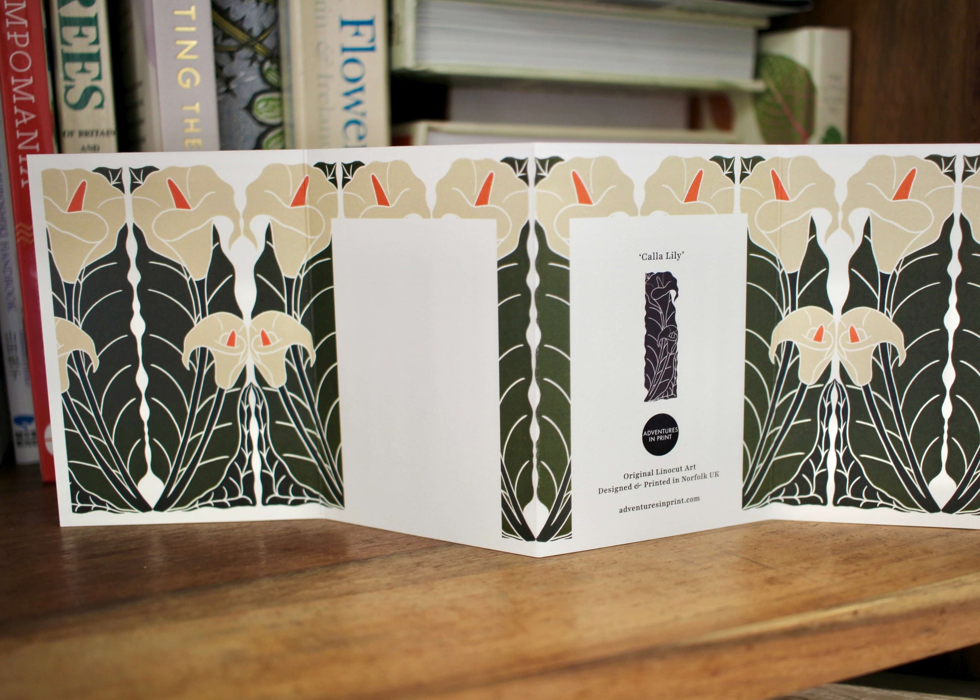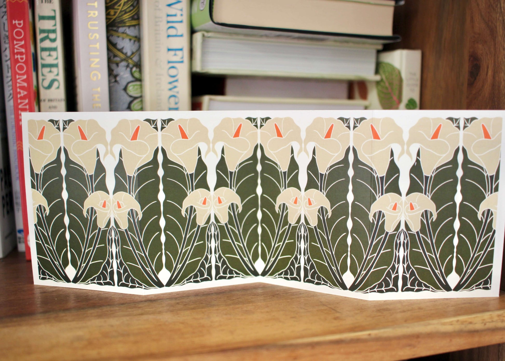Calla Lily Linocut Concertina Card | Single Card & Envelope
