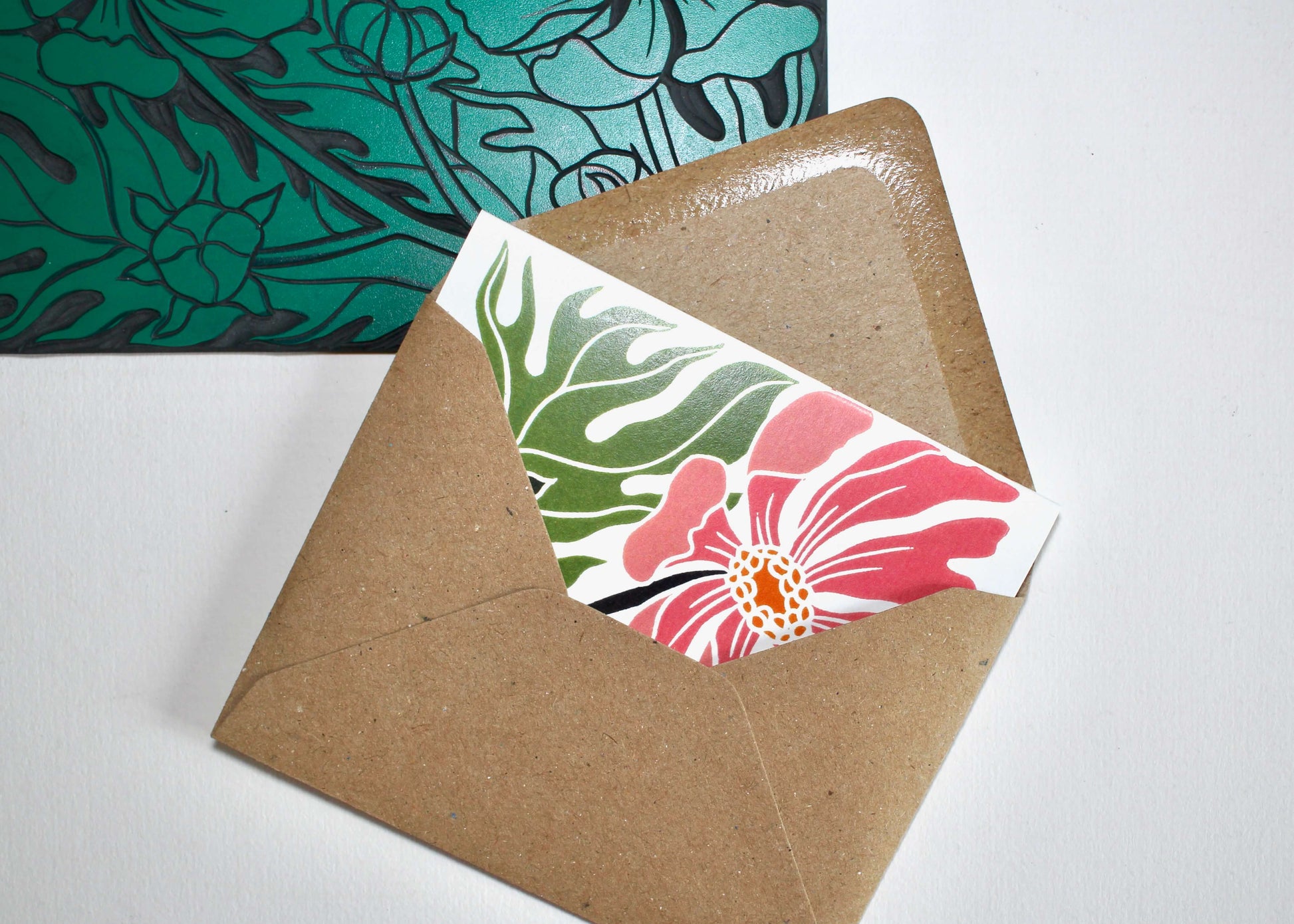 Cosmos Floral Linocut Concertina Card | Single Card & Envelope