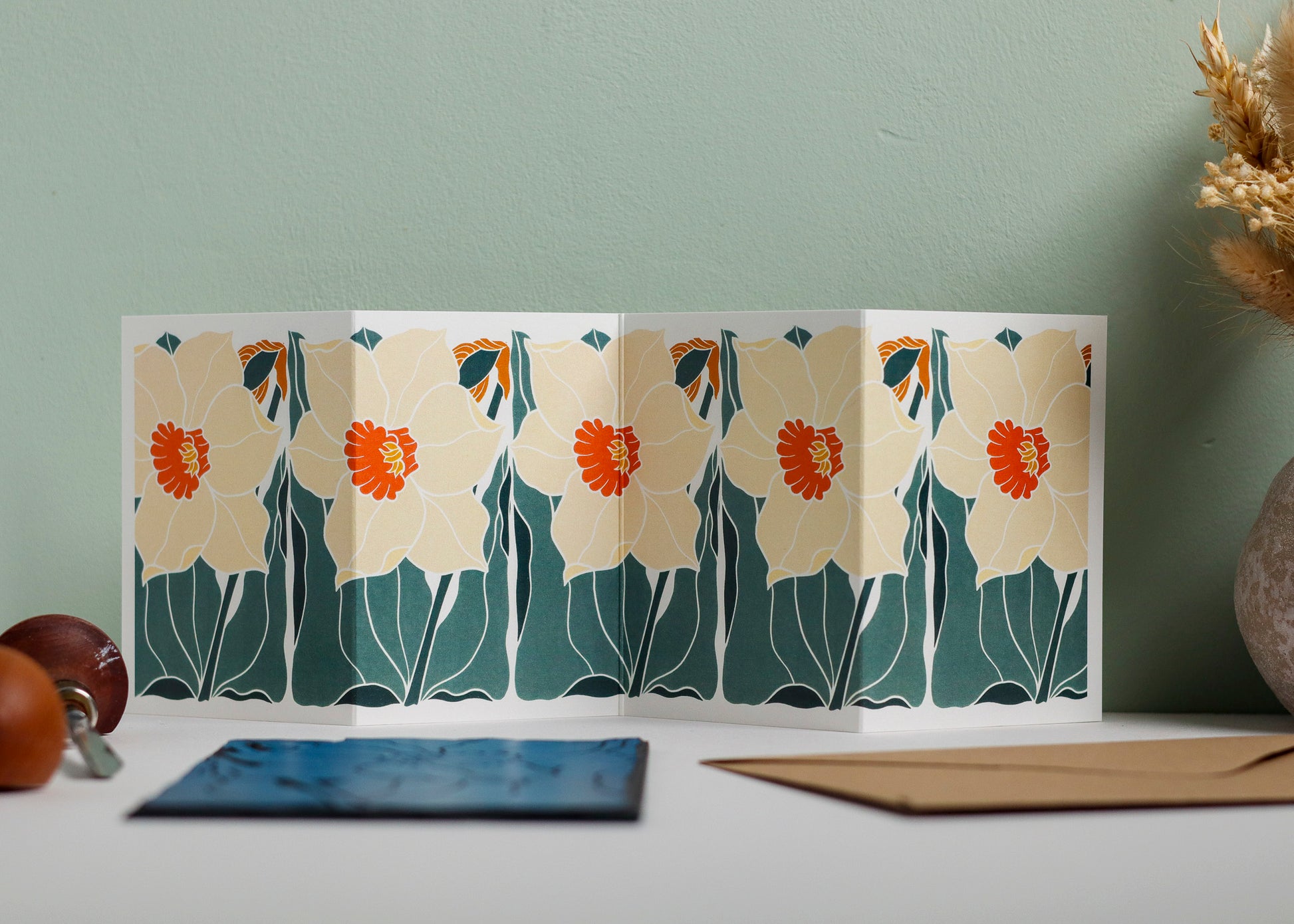Dancing Bright Daffodil Garland Card | Single Card & Envelope