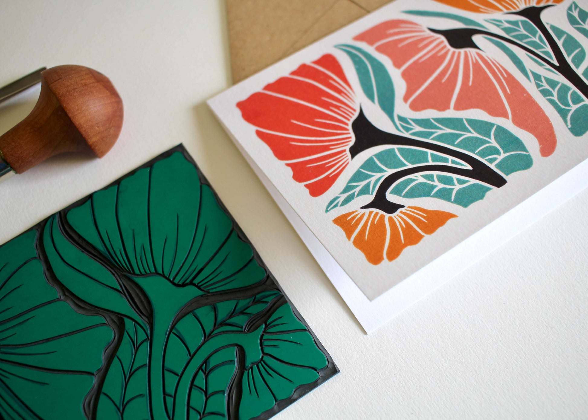 Pamela is a British printmaker and stationery designer on a printing adventure, one season at a time. She creates modern linocut artwork combining traditional printmaking techniques and digital colourful palettes.
