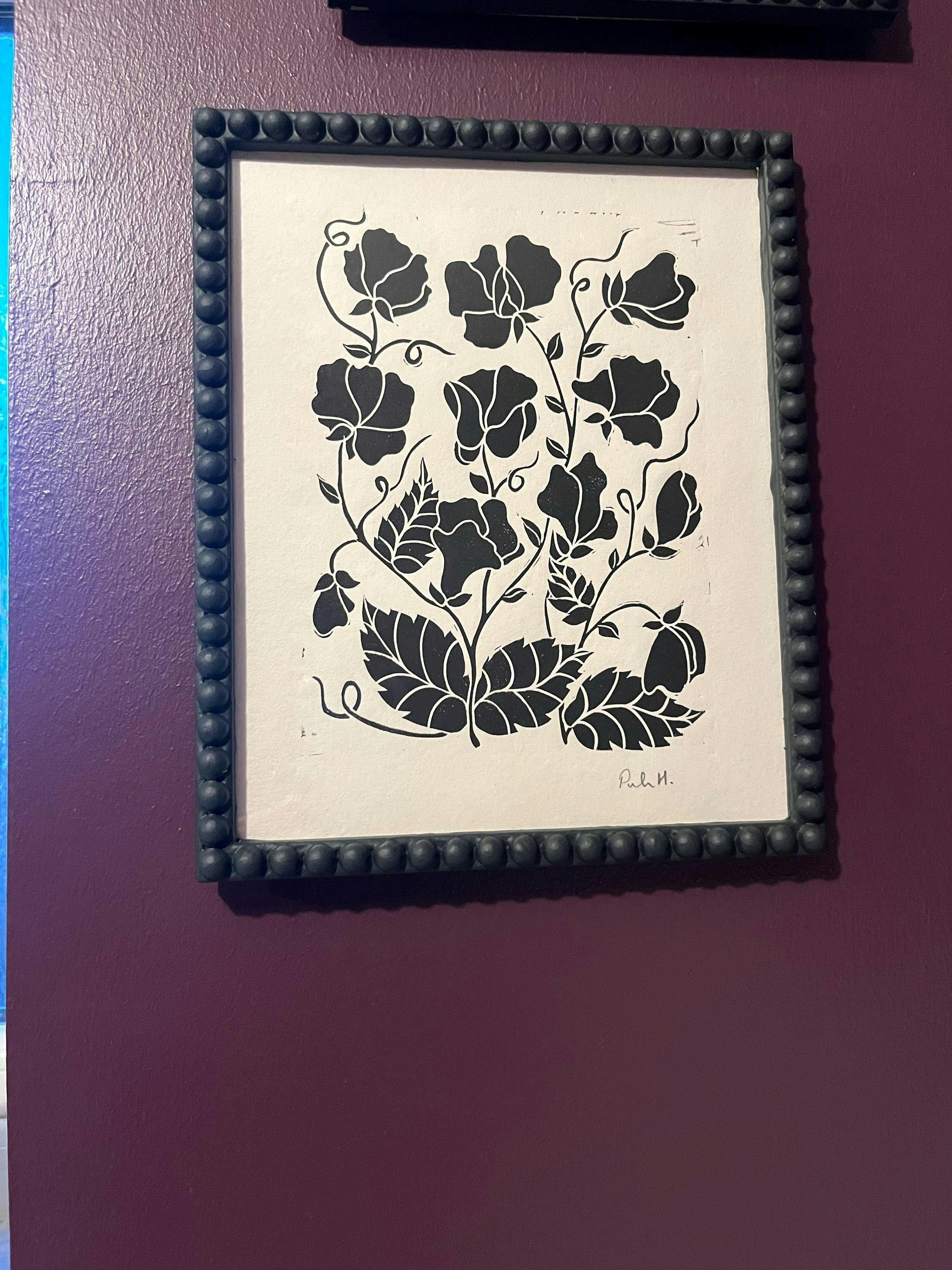 Joy Bloom Sweet Peas Linocut | Hand printed on Cotton Rag Paper