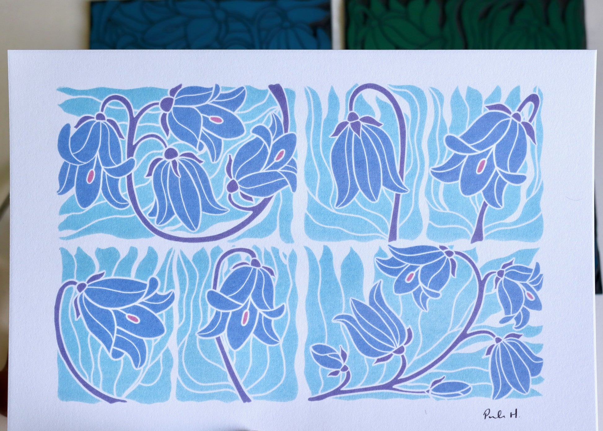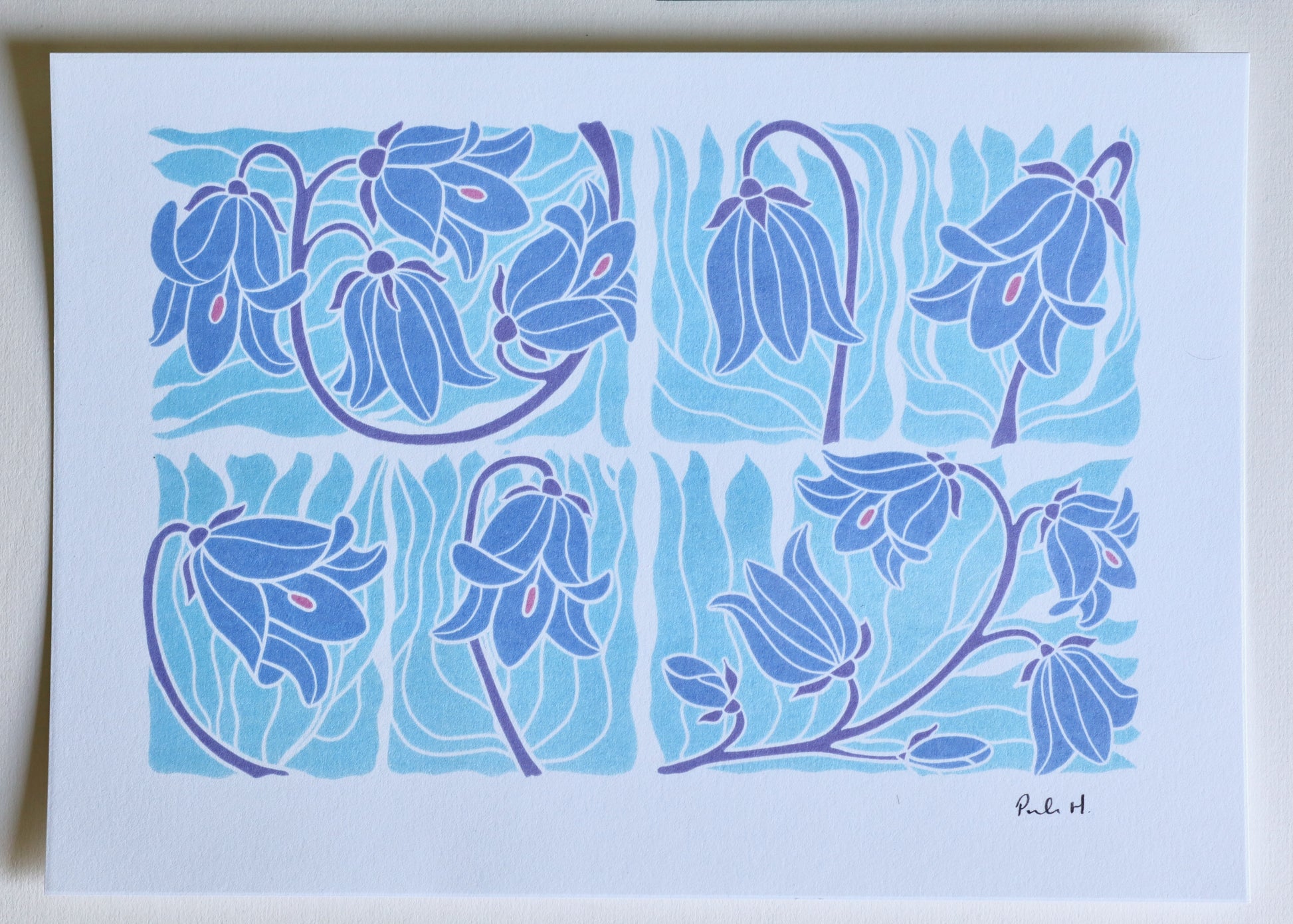 Scottish Bluebells Linocut Art | A4 Art Print on Cotton Paper
