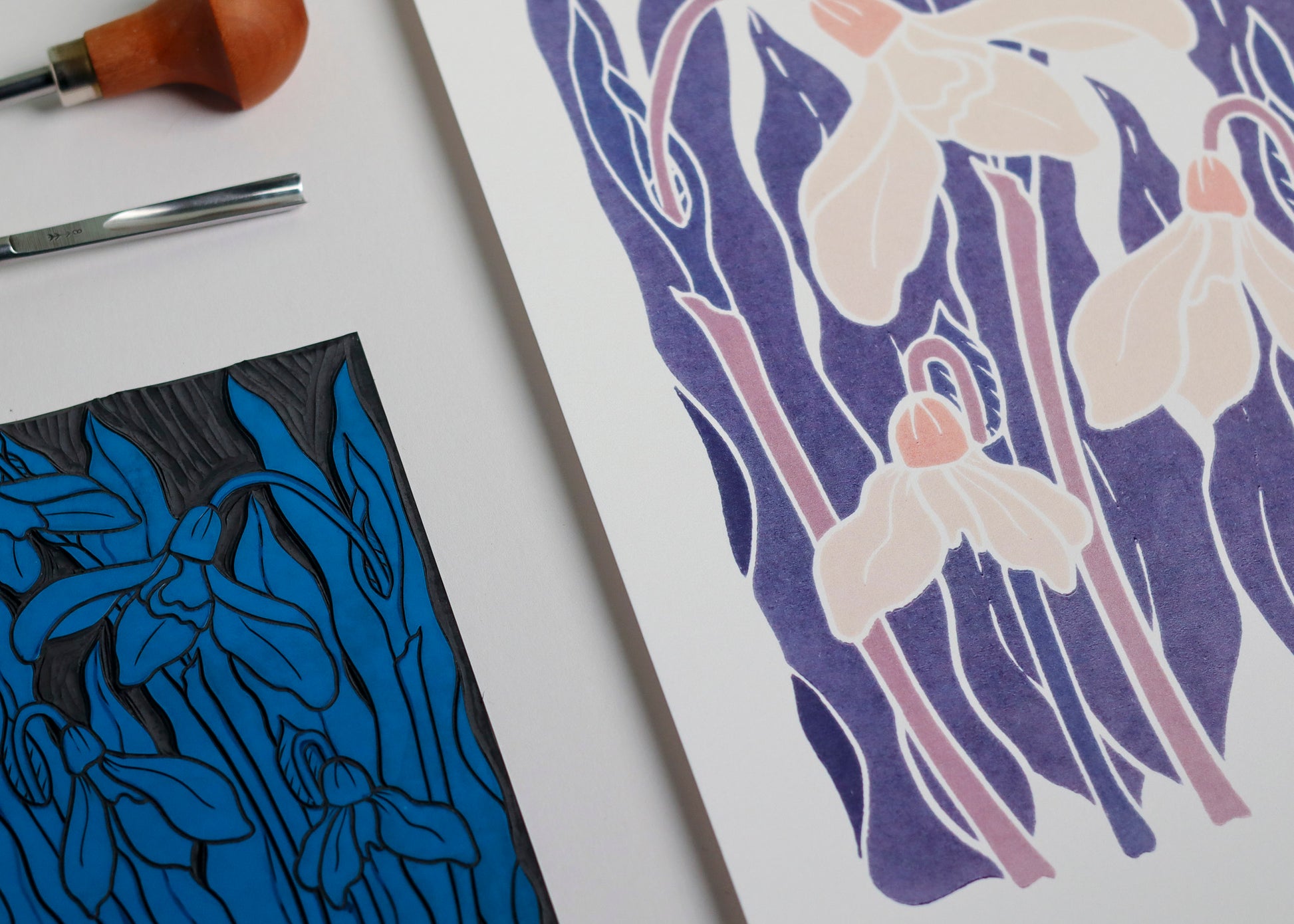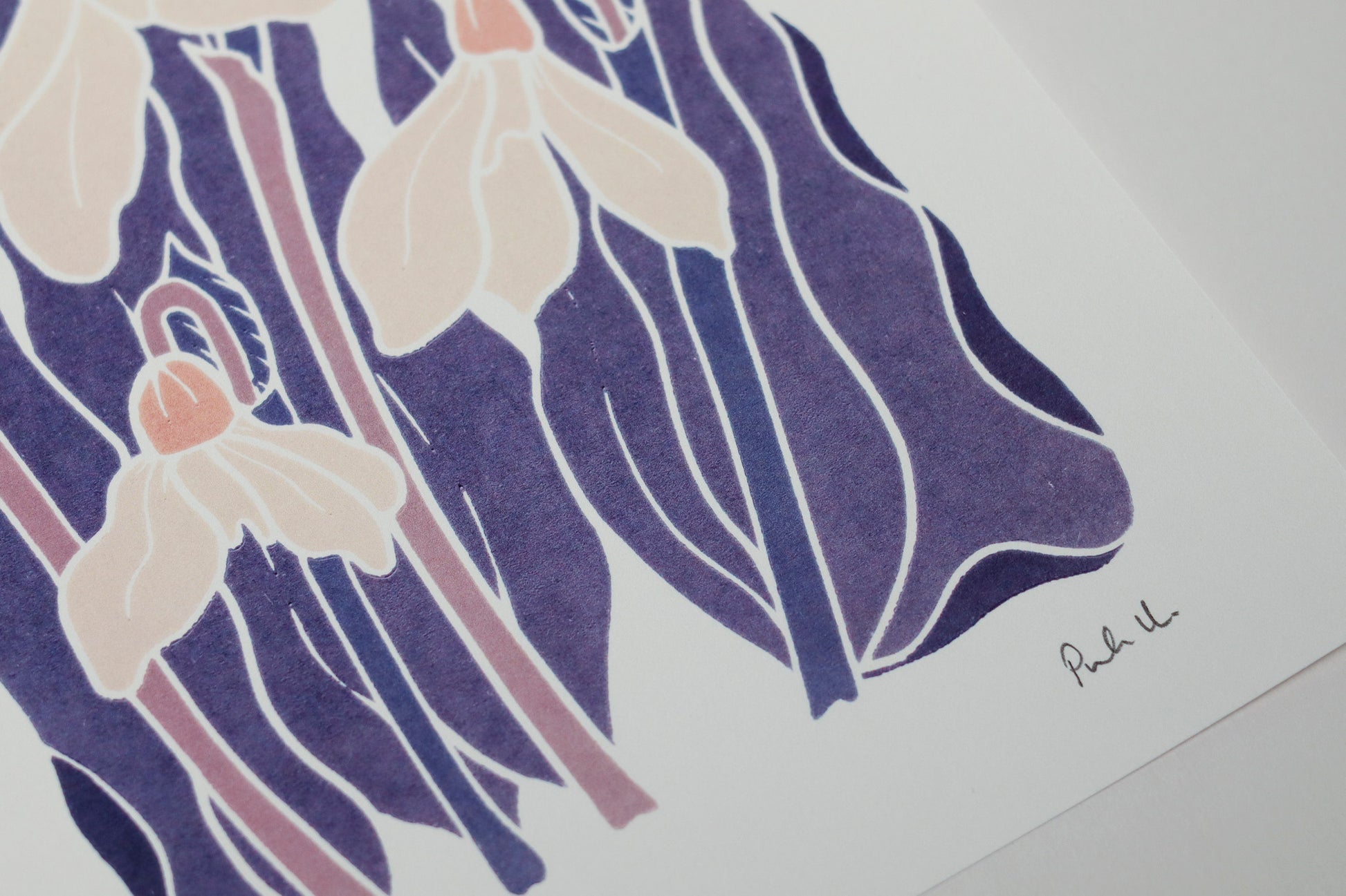 Each print is thoughtfully produced in my studio using archival-quality digital printing on luxurious 300gsm cotton paper. This premium paper selection ensures every detail of the original linocut shines through.
