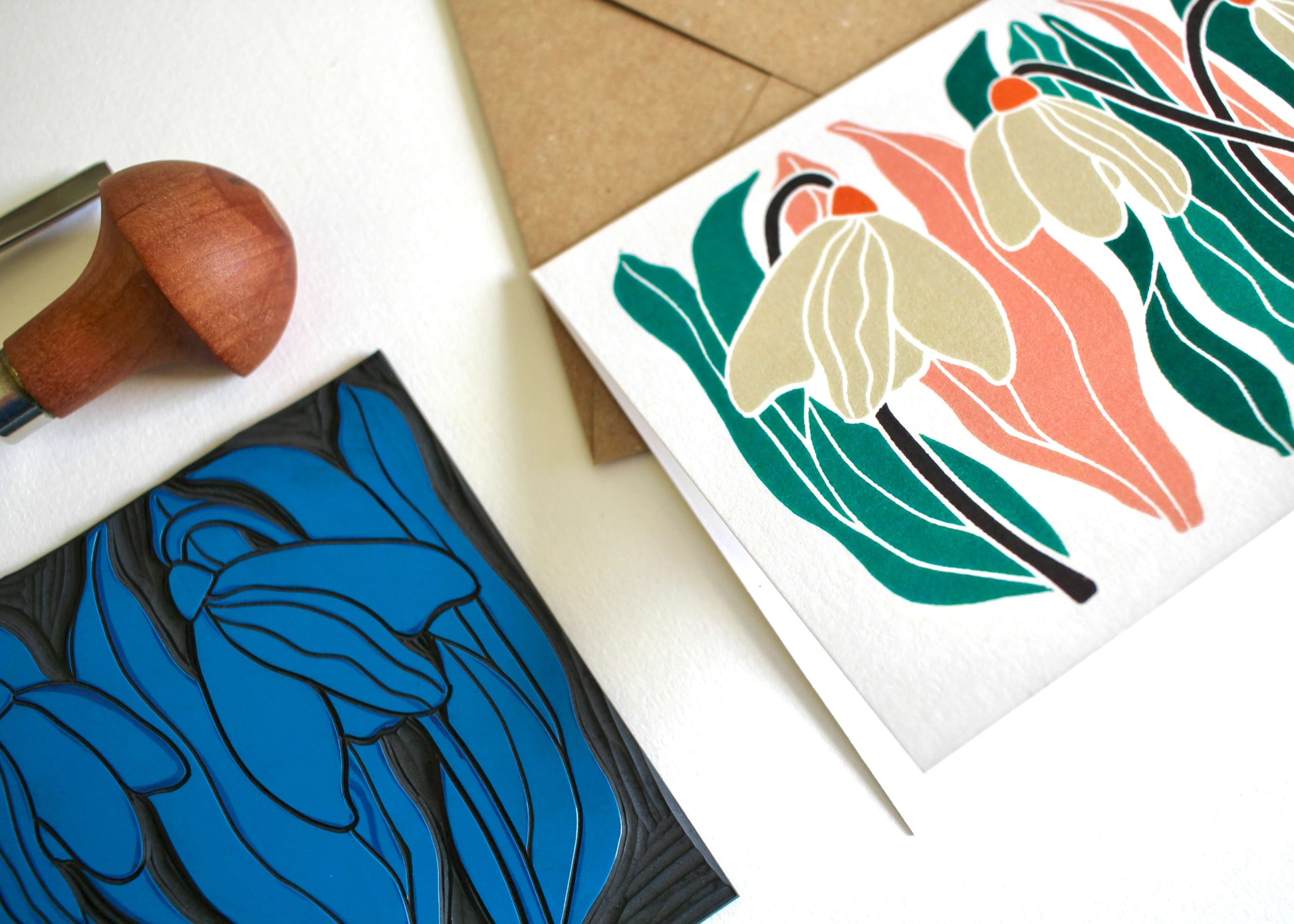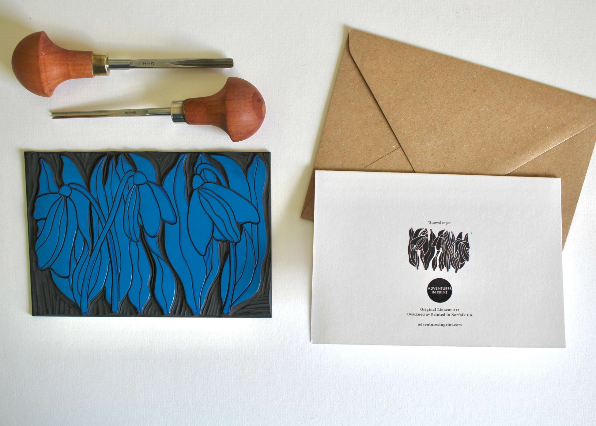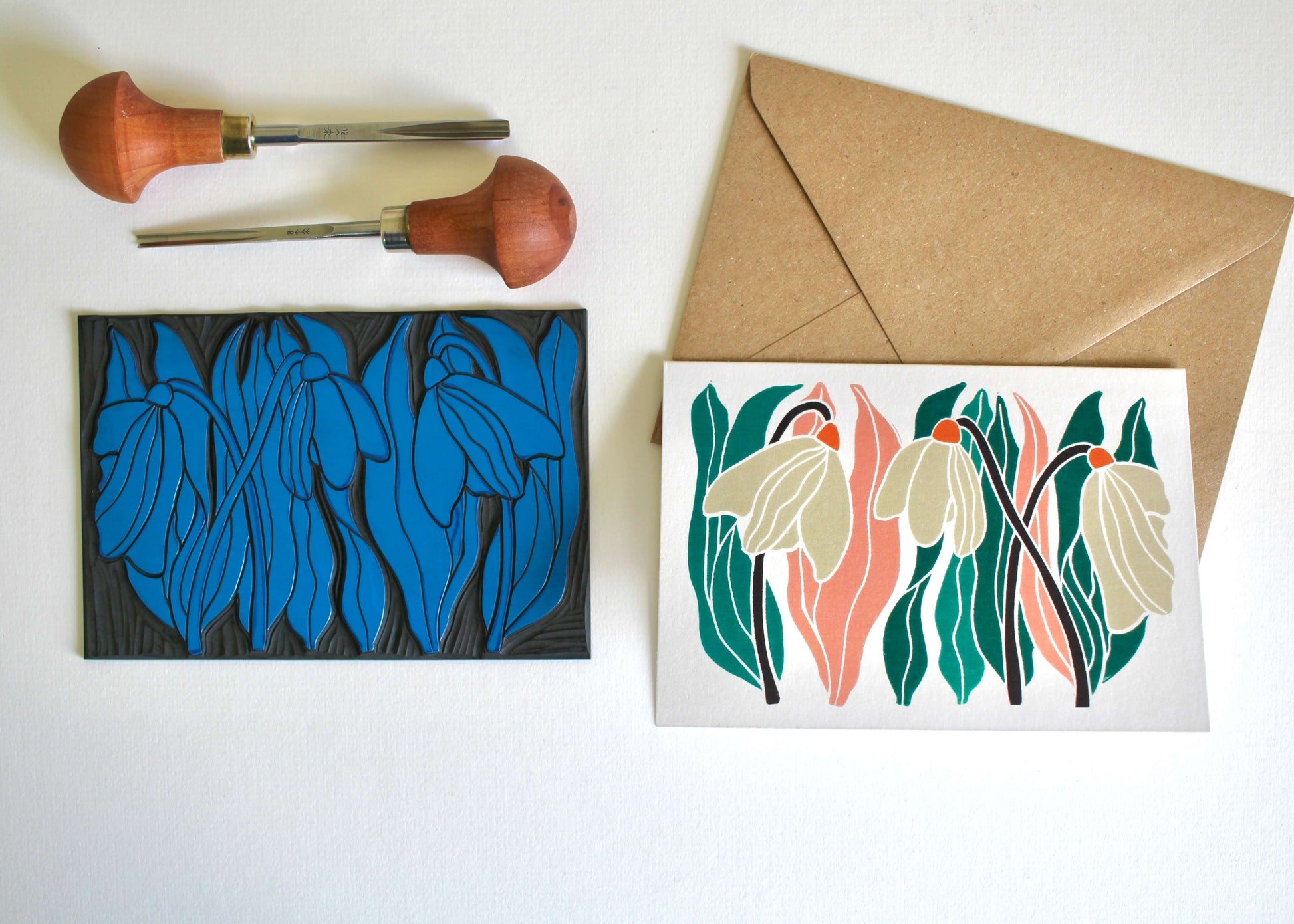 Snowdrops Linocut Art Greeting Card | Single Card & Envelope