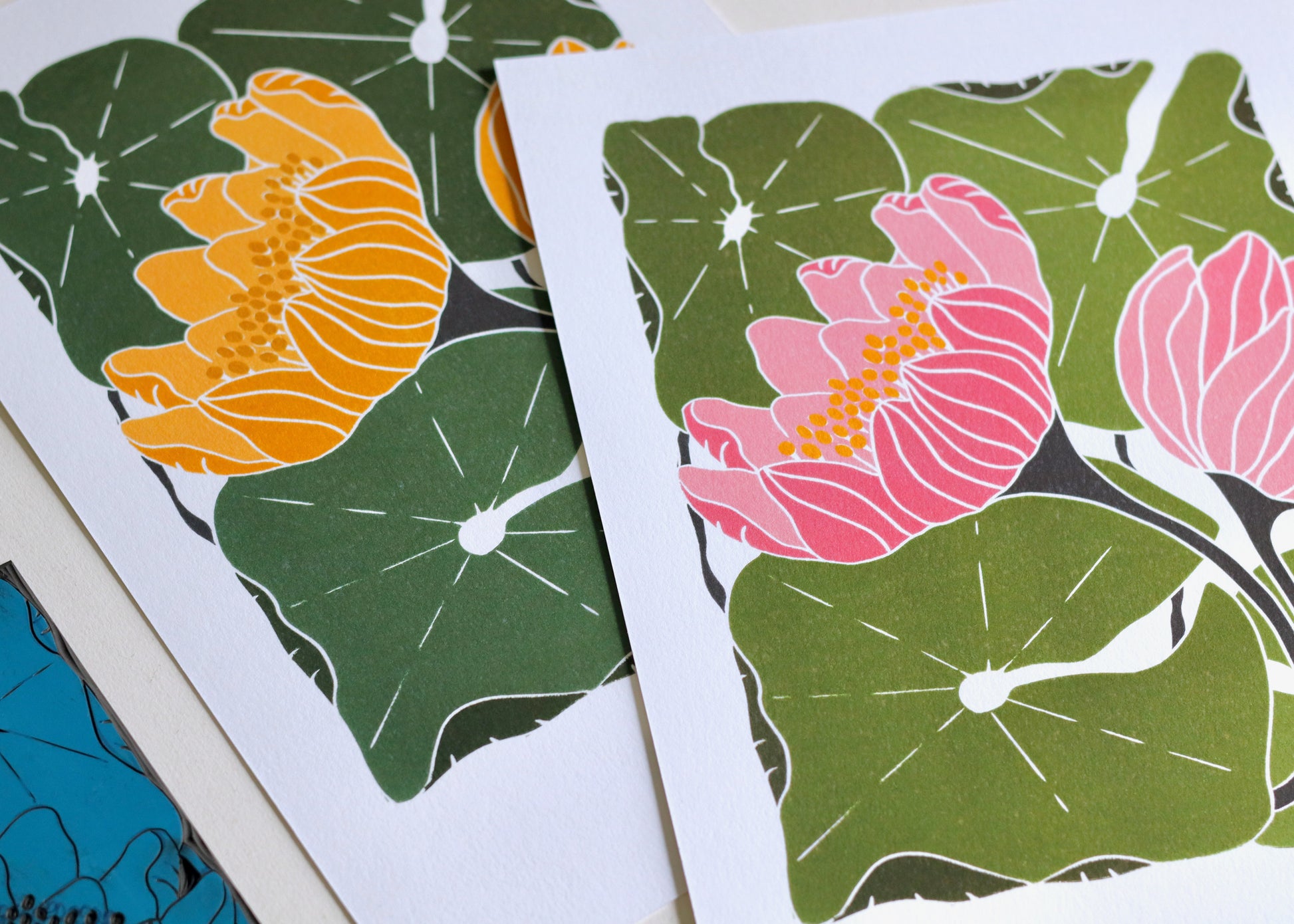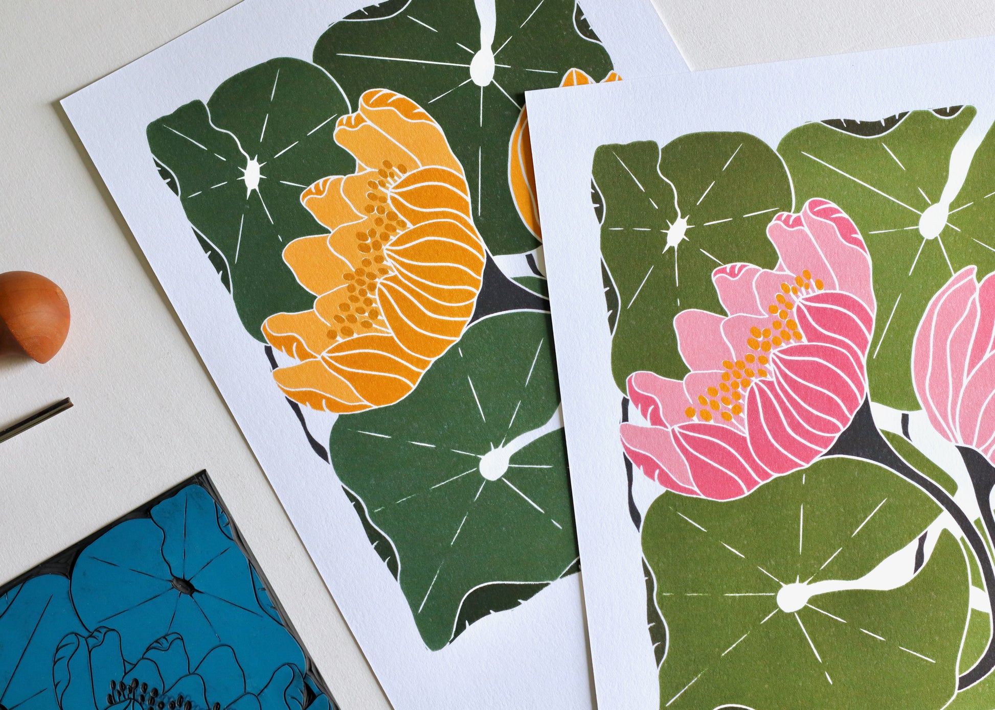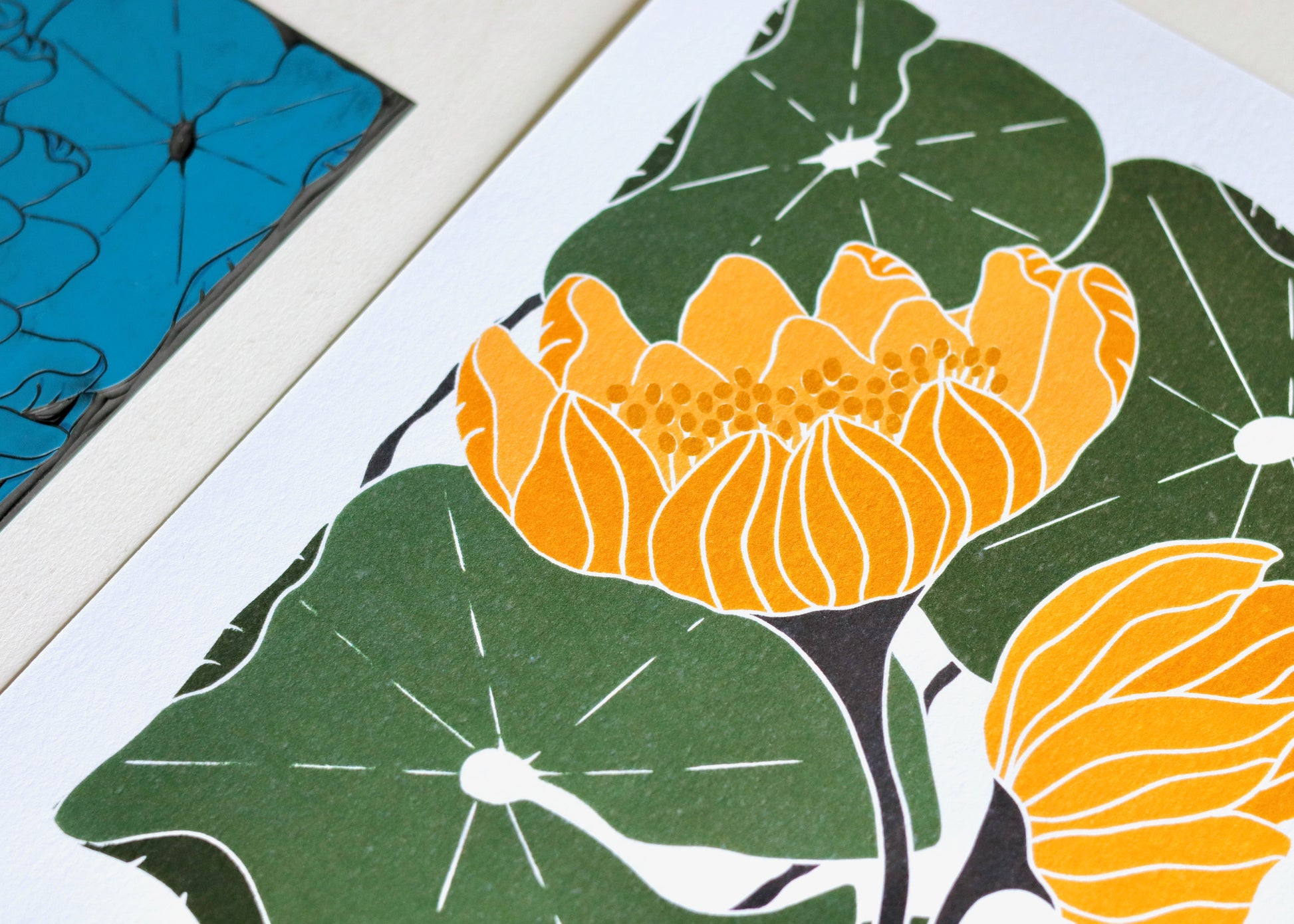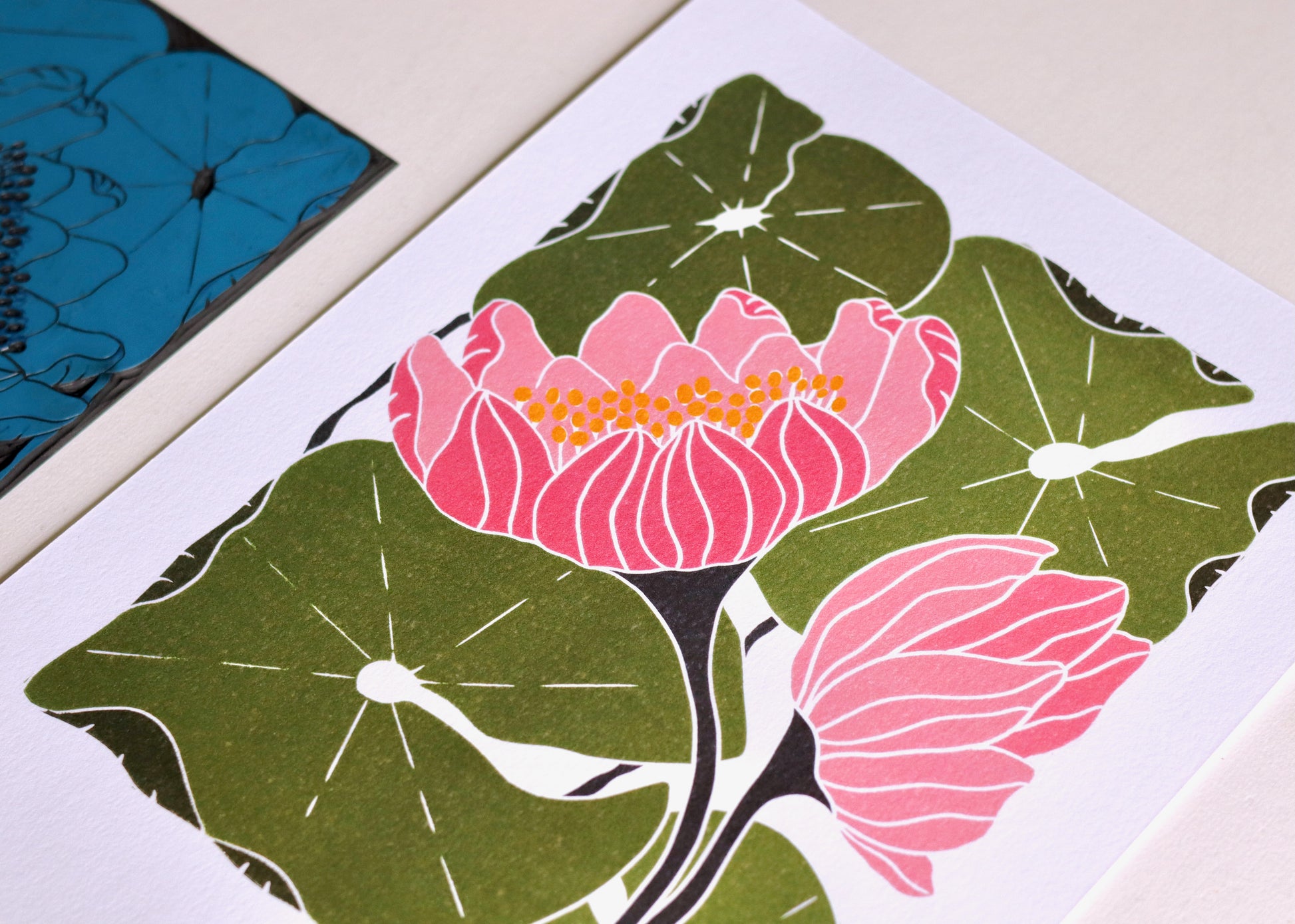 The second design in my Water Lily linocut collection, inspired by the peaceful waters of the Norfolk Broads and the simple joy of watching water lilies unfurl in our own garden pond, these prints bring a sense of calm and natural beauty to any space.