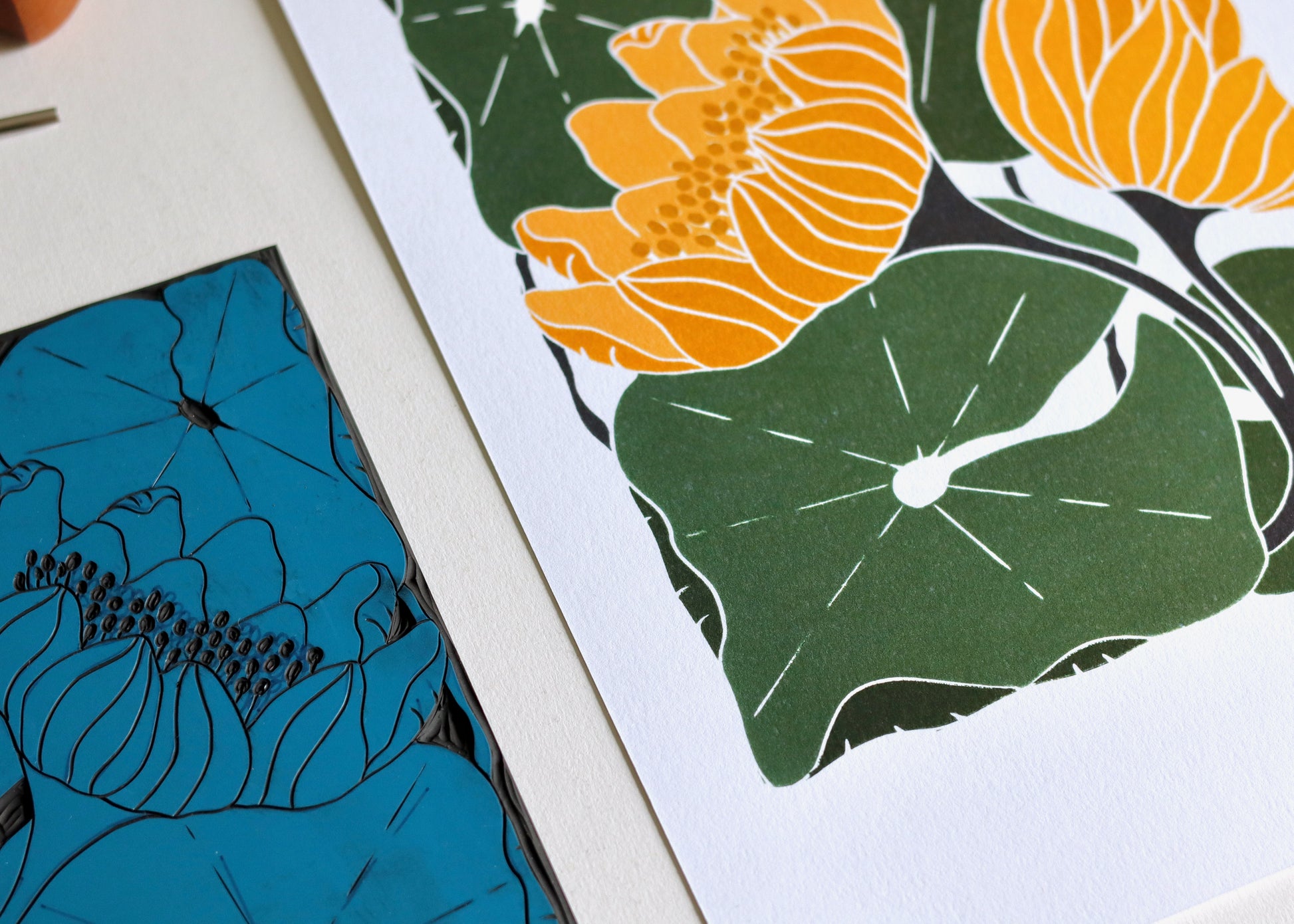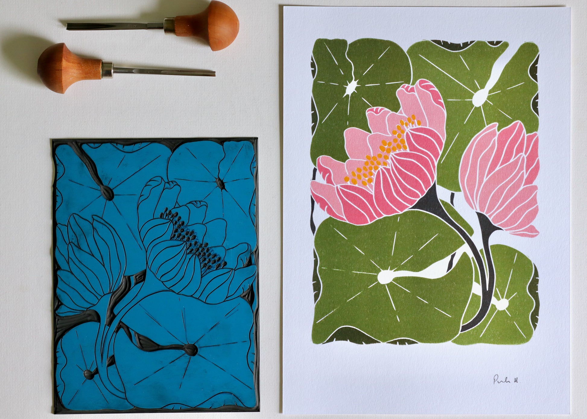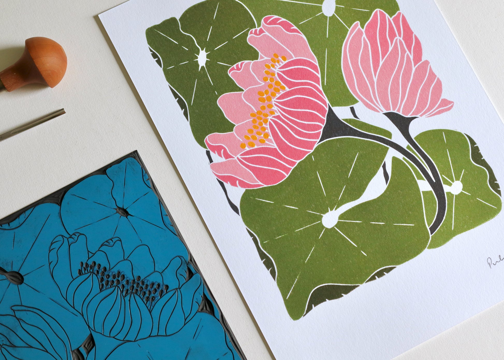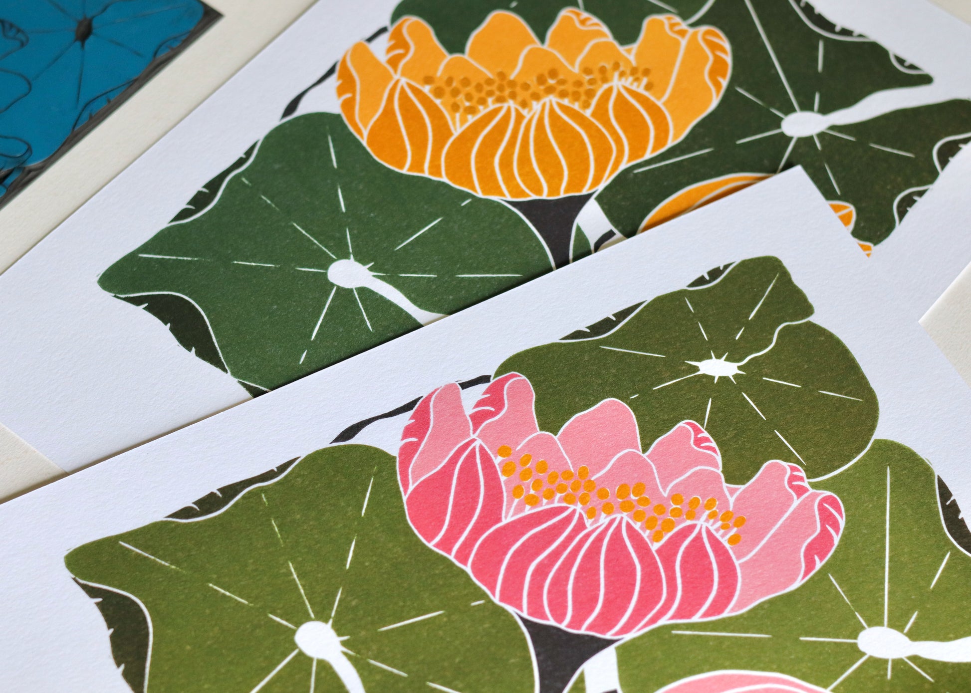 The second design in my Water Lily linocut collection, inspired by the peaceful waters of the Norfolk Broads and the simple joy of watching water lilies unfurl in our own garden pond, these prints bring a sense of calm and natural beauty to any space.